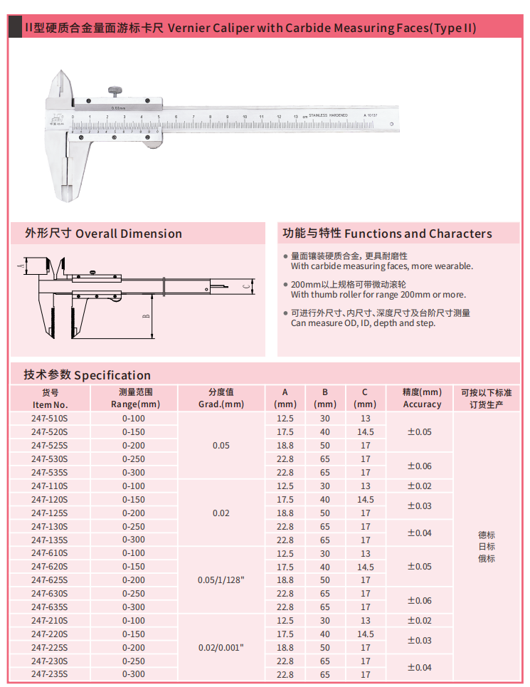 桂林硬质合金量面游标卡尺