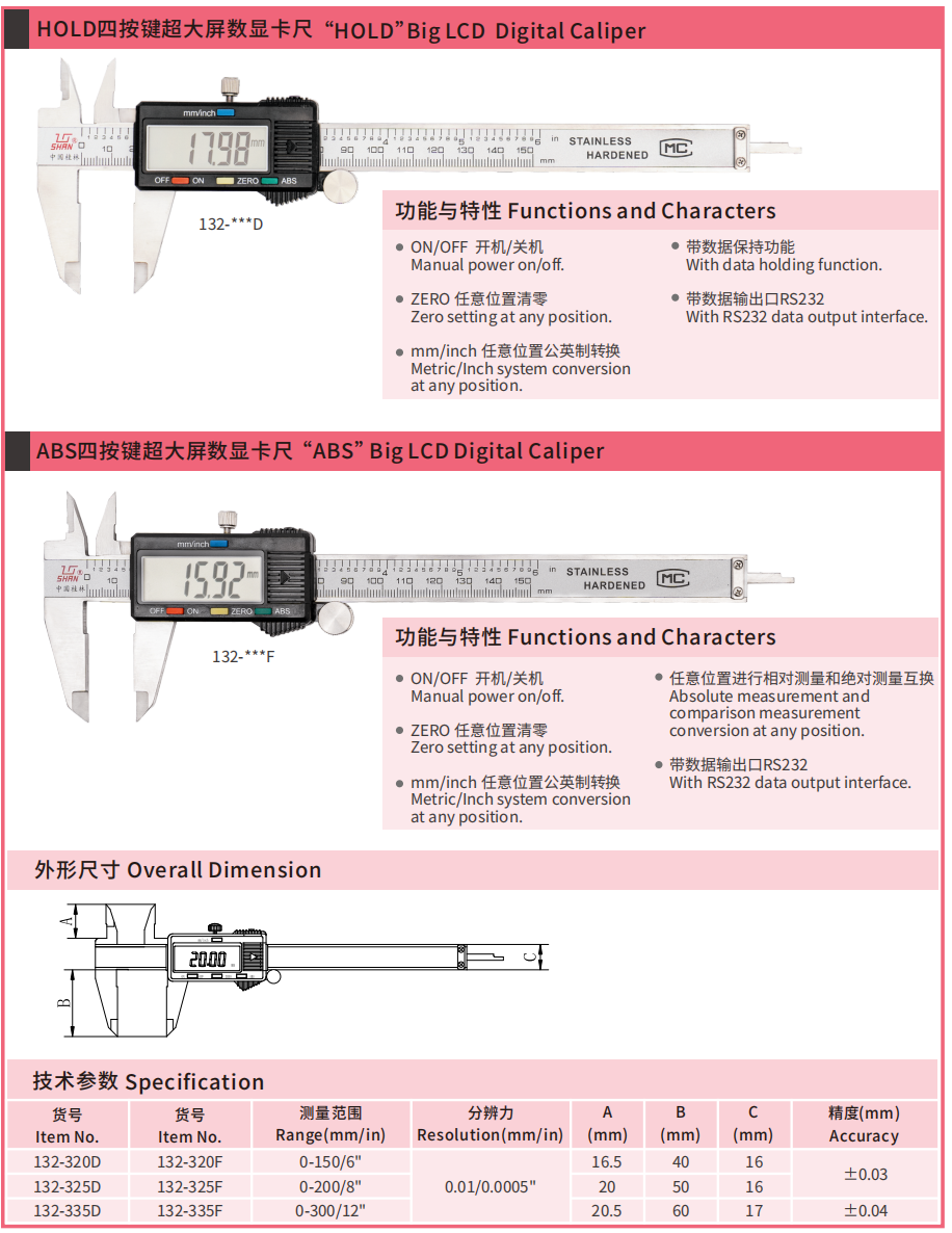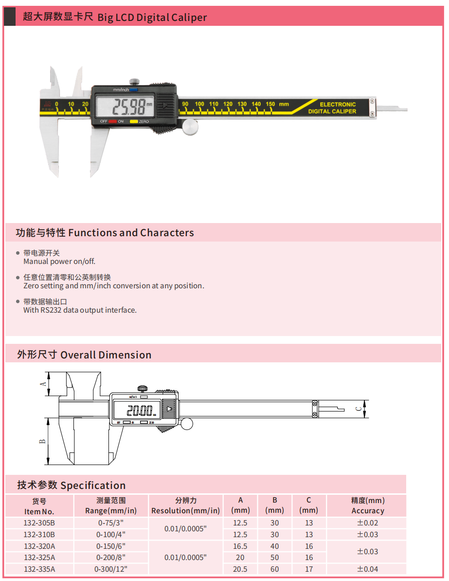 • 超大屏数显卡尺