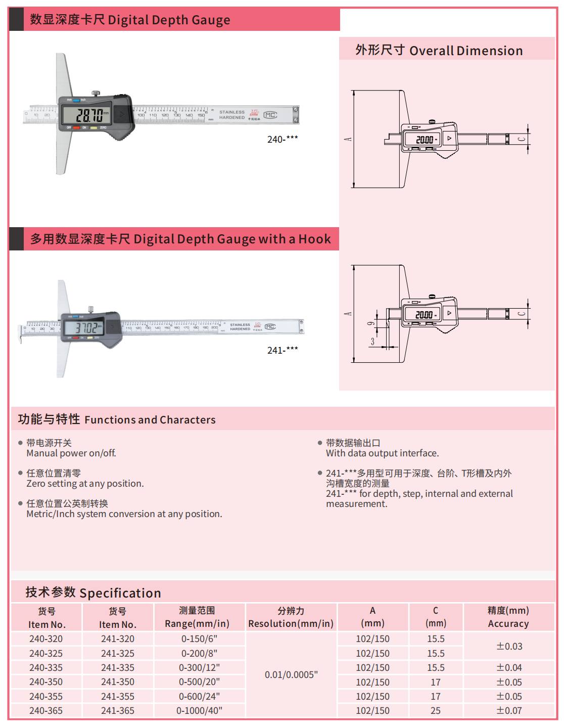 • 数显深度卡尺